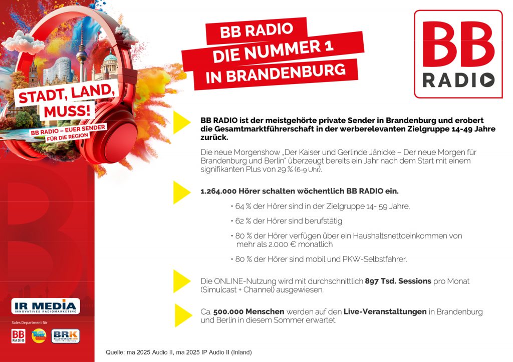ma 2025 Audio II bestätigt eindrucksvoll: BB RADIO ist erneut die Nummer 1 in Brandenburg.