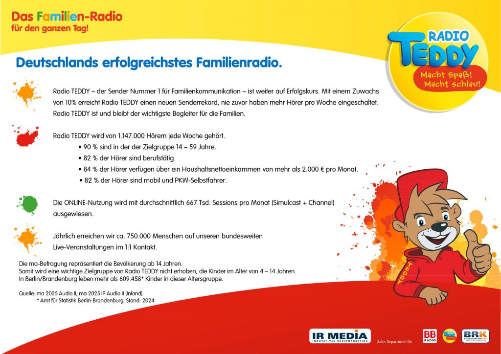 Radio TEDDY auf Rekordkurs – Deutschlands Sender Nr. 1 für Familien wächst weiter!